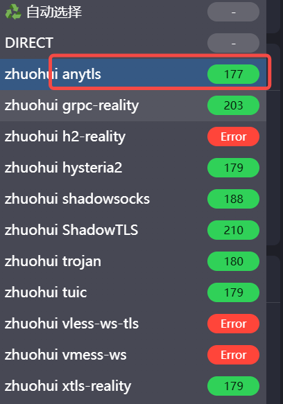 建议选择Anytls的协议,这是一个能够保持相对快速同时也能保证安全性的一个链接,至此已完成全部的配置,你的海外服务器会一直保持运行,而你的链接订阅也会很稳定,如果你需要找回自己的订阅链接,只需要重新通过cmd连接服务器,然后输入【sb】,singbox会自动出现引导你查看当前订阅链接。